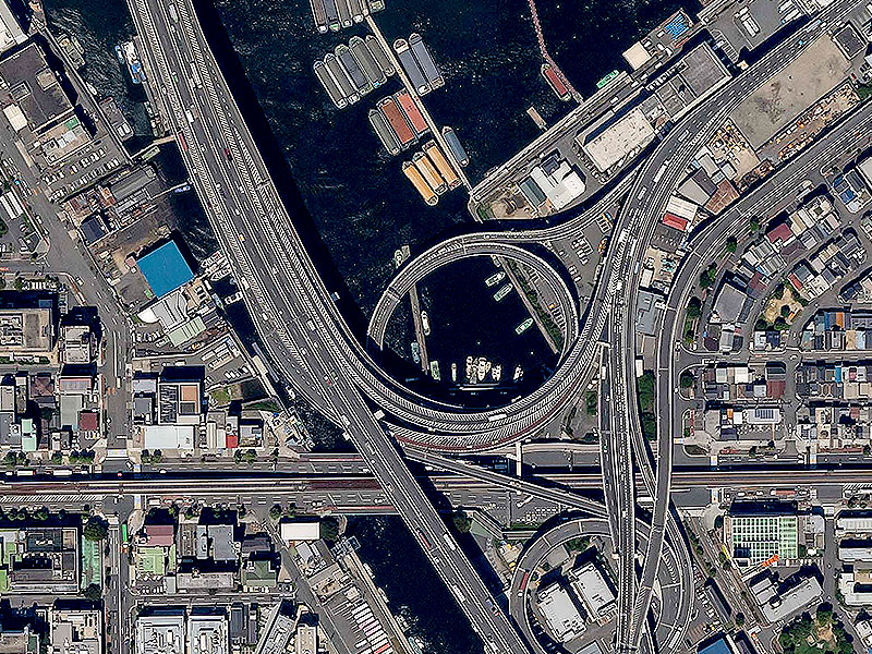 - 【距離:0.6km】JR「ユニバーサルシティ」駅 → 1.ユニバーサルシティポート → 2.天保山大橋 → 3.天保山JCT → 4.なみはや大橋 → 5.港大橋 → 6.千歳橋 → 7.尻無川水門 → 8.国道43号・阪神高速道路西大阪線 尻無川橋 → 9.岩崎運河橋りょう → 10.岩崎橋 → 11.岩松橋 → 大阪ドーム千代崎港 (解散)