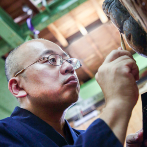 仏師。土御門仏所。みうらじゅん、いとうせいこう共著「見仏記」を読み仏像好きに。一度はサラリーマンになるも、好きが嵩じて大仏師のもとへ弟子入り。13年の修行をへて独立。技術の継承だけでなく、ドローン仏など新しい表現にも挑戦し、仏教の教えを現代にどう伝えるか模索し続けている。