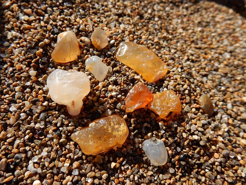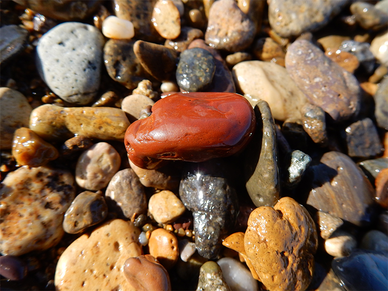 波打ち際に転がる小さな石に