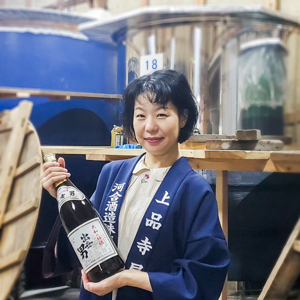 江戸時代の町並み残る今井町で現存唯一の酒蔵・河合酒造16代目当主。1785年には既に酒造業を営み、国の重文に指定された母屋は、かつての豪商の風格を今に伝える。数少ない女性蔵元杜氏として、昔ながらの伝統を守り、小さな蔵だからこそできる「造り手の想いが伝わる丁寧な酒造り」を心がけている。
