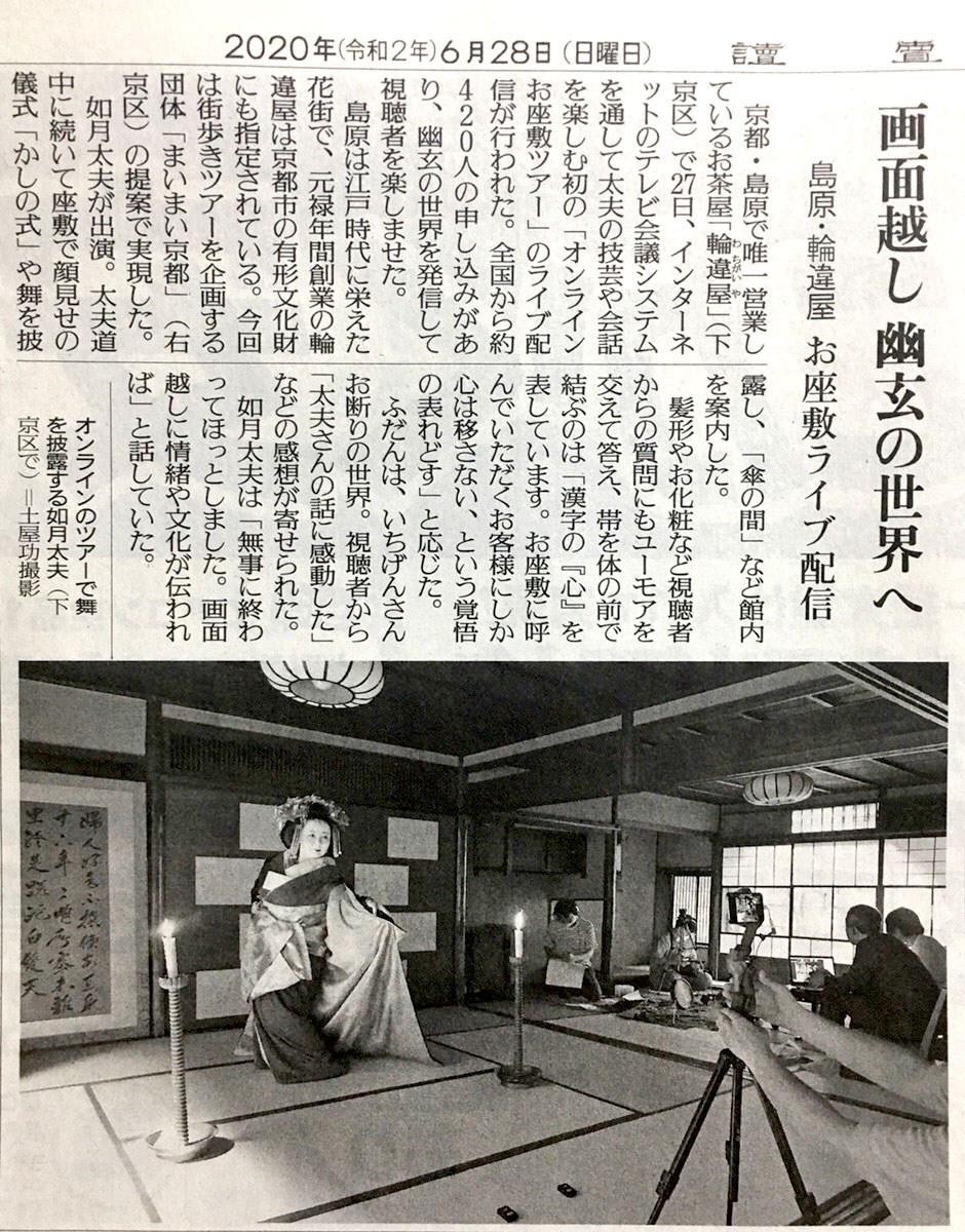 読売新聞に掲載されました。 紹介いただいた輪違屋オンラインお座敷はこちら