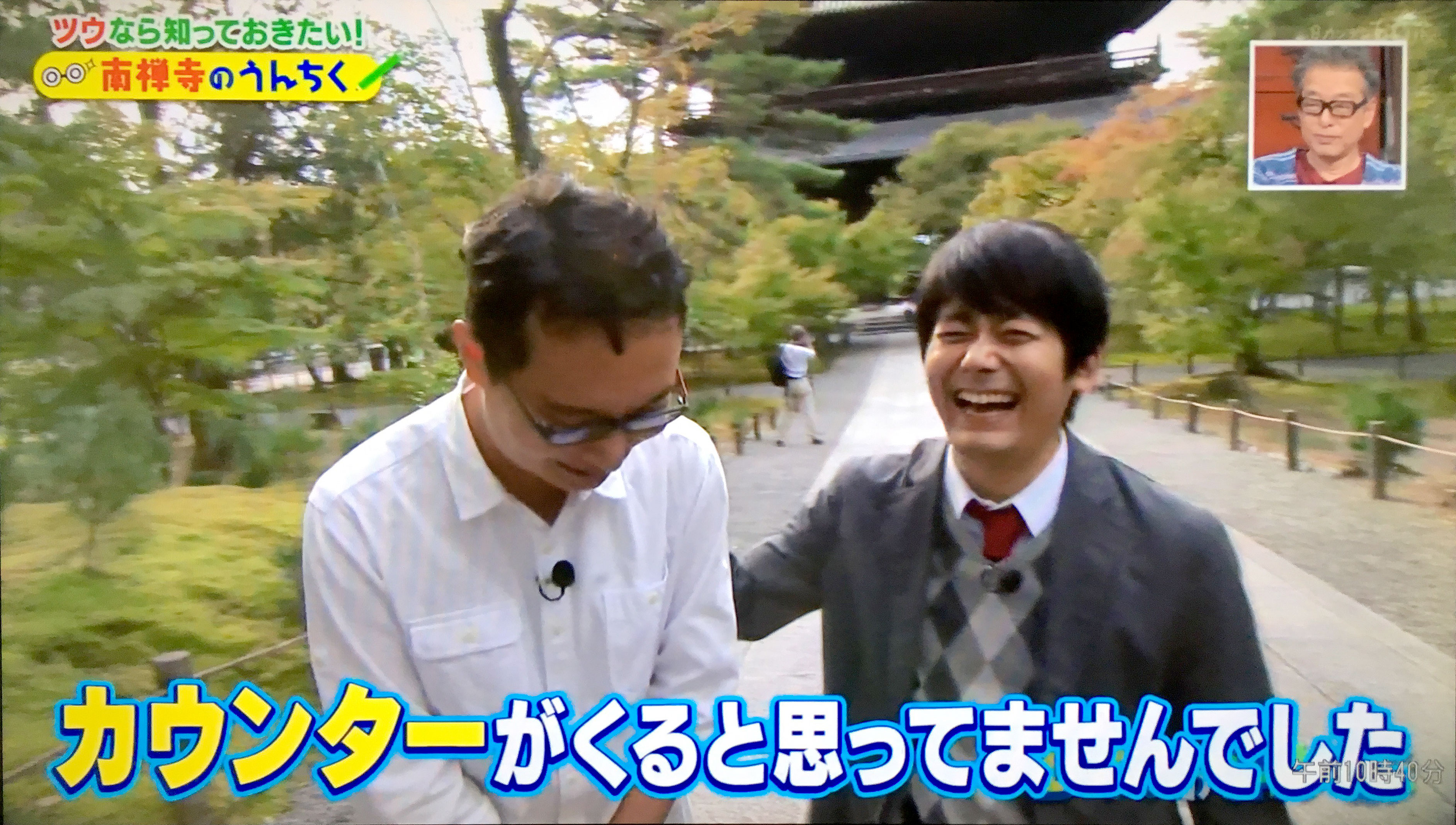 関西テレビ「よ~いドン!」にスタッフの以倉が出演。 お笑いコンビ「ロザン」のお二人を連れて、南禅寺をご案内しました。